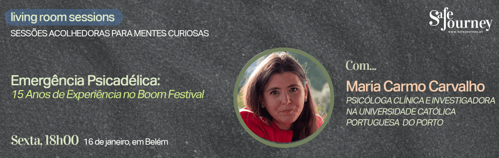 No próximo dia 16 de janeiro, vamos ter um encontro com a psicóloga Maria Carmos Carvalho dedicado a conhecer e refletir sobre a experiência de 15 anos do serviço de emergência psicadélica (PsyCare) da Kosmicare no Boom Festival. A sessão decorrerá em Português.